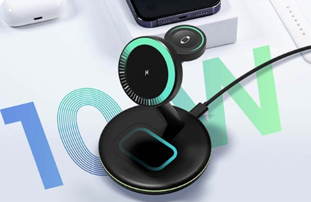 - Ταυτόχρονη Φόρτιση: Υποστηρίζει τη φόρτιση 3 συσκευών ταυτόχρονα: smartphone, ακουστικών και smartwatch.