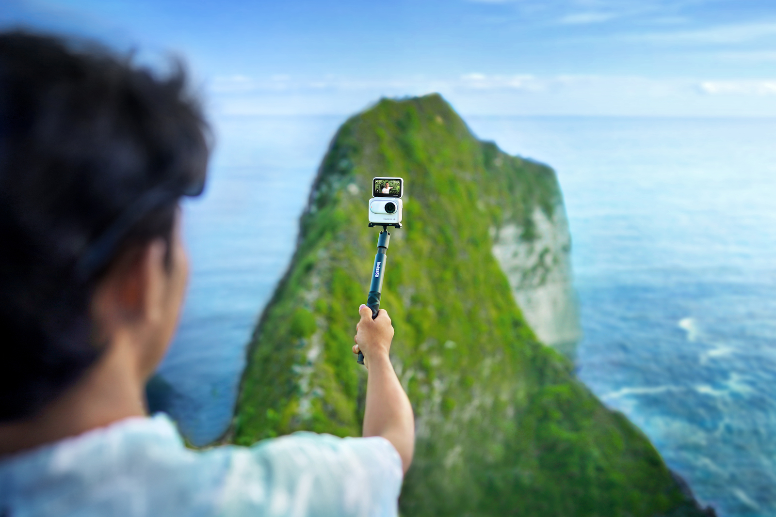 Πραγματοποιήστε λήψεις με την GO 3S στο Action Pod για τέλεια καδραρισμένες selfies, άψογο vlogging ή ακριβή λήψη με το χέρι.