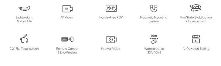 Η GO 3S διαθέτει επίσης βελτιωμένο HDR, υποστήριξη για υποβρύχια χρήση έως 10 m χωρίς θήκη, καθώς και Slow Motion έως 200fps, ενώ υποστηρίζει και Apple Find My, για εύκολο εντοπισμό της κάμερας αν χαθεί.