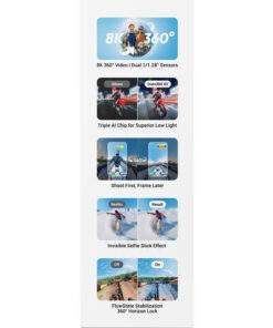 Η Insta360 X5 Action Camera 8K Essentials Bundle εντυπωσιάζει με τους διπλούς 1/1.28″ αισθητήρες της, που σε συνδυασμό με τα δύο επαγγελματικά imaging chips, προσφέρουν εξαιρετική ποιότητα εικόνας και λεπτομέρεια. Επιπλέον, το ενσωματωμένο 5nm AI chip αναλαμβάνει την έξυπνη επεξεργασία των δεδομένων, βελτιστοποιώντας τη λήψη και την απόδοση σε κάθε καρέ. Ο συνδυασμός μεγάλου μεγέθους αισθητήρα και προηγμένων επεξεργαστών διασφαλίζει κορυφαία απόδοση σε κάθε συνθήκη λήψης.