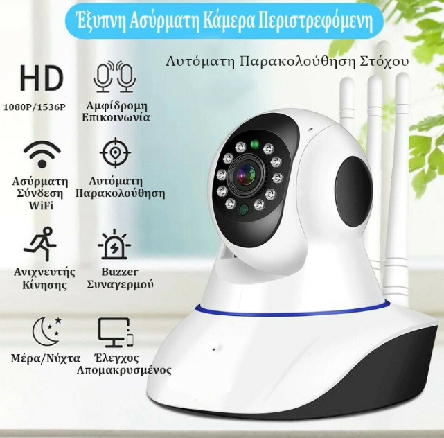 Η κάμερα ασφαλείας είναι ψηφιακή (IP), συνδέεται στο δίκτυο σας ασύρματα μέσω Wi-Fi και τοποθετείται σε επίπεδες επιφάνειες. Διαθέτει αδιάβροχη προστασία για να μπορεί να λειτουργήσει σε εξωτερικό περιβάλλον χωρίς να επηρεάζεται από τις καιρικές συνθήκες. Τέλος, είναι εφοδιασμένη με φώτα led υπερύθρων έτσι ώστε να είναι δυνατή η καταγραφή της εικόνας σε απόλυτο σκοτάδι.