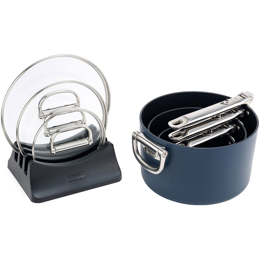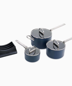 Το Σετ Τηγανιών και Κατσαρόλων Joseph Joseph Space περιλαμβάνει τρία βασικά κομμάτια: μια μικρή κατσαρόλα, μια μεσαία κατσαρόλα και μια μεγάλη κατσαρόλα. Κάθε κατσαρόλα διαθέτει μια αντικολλητική κεραμική επικάλυψη, η οποία είναι: