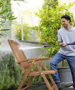 Αφού τελειώσετε την εργασία σας η αποθήκευση είναι εύκολη αφού καταναλώνει ελάχιστο χώρο. Ο βασικός του εξοπλισμός περιλαμβάνει λάστιχο υψηλής πίεσης μήκους 3m, ακροφύσιο ψεκασμού και φίλτρο νερού για προστασία της αντλίας από σωματίδια βρωμιάς.