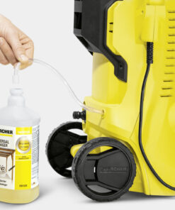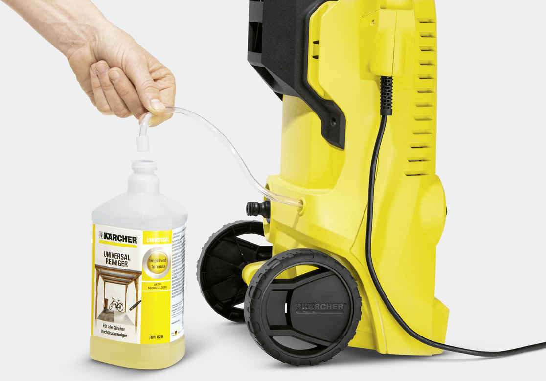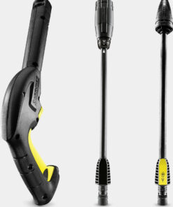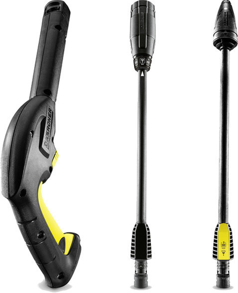 Η συσκευή είναι εξοπλισμένη με πιστόλι υψηλής πίεσης και 2 κάνες ψεκασμού με προσαρμογέα ταχυσυνδέσμου. Το επίπεδο πίεσης μπορεί να ρυθμιστεί απευθείας στην κάνη ψεκασμού Click Vario Power – για μέγιστο έλεγχο σε κάθε εργασία καθαρισμού. Η συσκευή είναι επίσης εξοπλισμένη με ρυθμιζόμενη καθ’ ύψος τηλεσκοπική λαβή για άνετη μεταφορά και αποθήκευση, αφαιρούμενο δοχείο απορρυπαντικού για καθαρή πλήρωση, καθώς και πρακτικά στηρίγματα για εξαρτήματα, πιστόλι υψηλής πίεσης και καλώδιο.