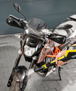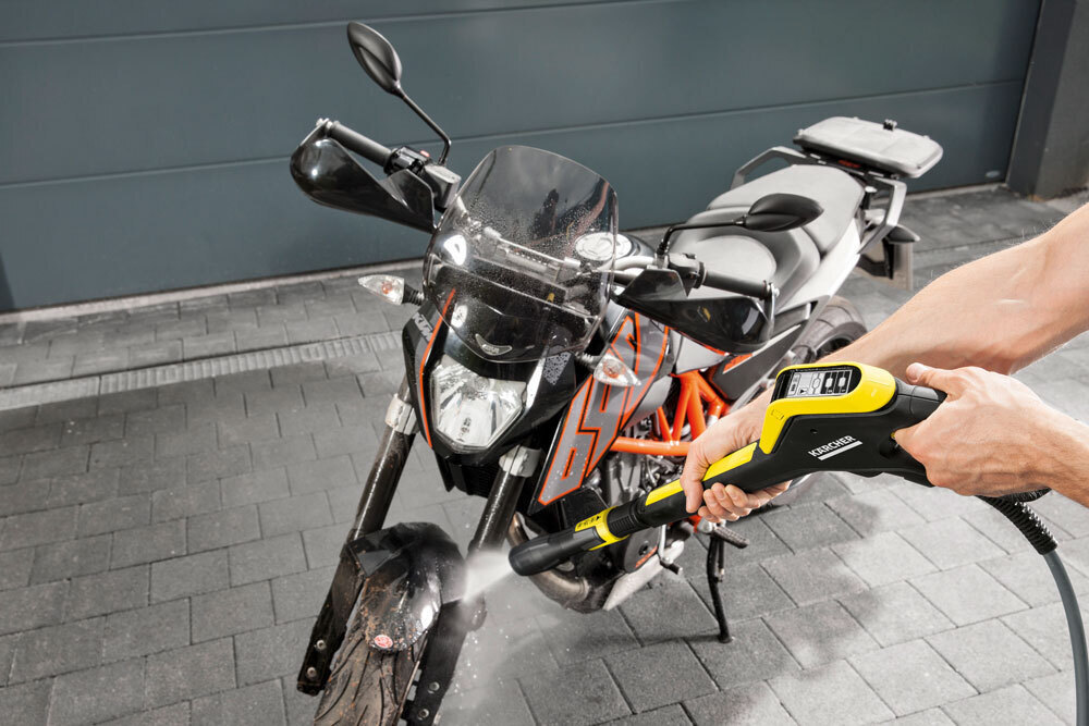 Το πλυστικό μηχάνημα της Karcher λειτουργεί με ρεύμα συνδεόμενο σε μία παροχή πρίζας και αντίστοιχα στην παροχή νερού. Η εκτεταμένη γκάμα εξοπλισμού περιλαμβάνει πιστόλι σκανδάλης με πρακτικό προσαρμογέα Quick Connect μέσω σωλήνα υψηλής πίεσης PremiumFlex , αξιόπιστο φίλτρο νερού που προστατεύει την αντλία, λόγχη ψεκασμού Vario Power (VPS) και Dirt Blaster με περιστρεφόμενο σποτάκι. Η ρύθμιση της πίεσης στο VPS μπορεί να ρυθμιστεί με μια απλή περιστροφική κίνηση και το Dirt Blaster κάνει σύντομη εργασία ακόμη και της πιο επίμονης βρωμιάς. Άλλες λεπτομέρειες εξοπλισμού περιλαμβάνουν το σύστημα απορρυπαντικού Plug ‘n’ Clean , την τηλεσκοπική λαβή από αλουμίνιο και τη θέση στάθμευσης για εύκολα προσβάσιμα αξεσουάρ.
