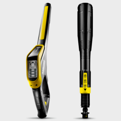 Πιστόλι με σκανδάλη με οθόνη LCD και κουμπιά για ρύθμιση της πίεσης ή δοσομέτρηση του καθαριστικού. Περιλαμβάνει λειτουργία boost για επιπλέον ισχύ για την αντιμετώπιση επίμονων ρύπων. Το περιστρεφόμενο Multi Jet 3 σε 1 περιλαμβάνει τρία διαφορετικά ακροφύσια για εύκολη εναλλαγή. Προσαρμογέας Quick Connect για εύκολη στερέωση του λάστιχου υψηλής πίεσης και των εξαρτημάτων.