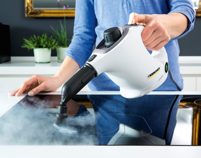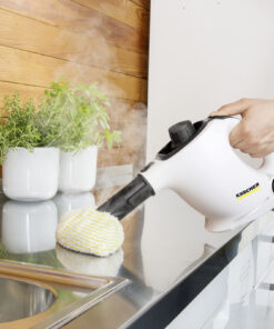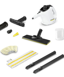 Η συμπαγής ατμοσφουγγαρίστρα ατμού Kärcher SC 1 EasyFix 2 σε 1 (με σετ καθαρισμού δαπέδου) μπορεί να χρησιμοποιηθεί οπουδήποτε στο σπίτι και καθαρίζει χωρίς τη χρήση χημικών. Ο σχολαστικός καθαρισμός με την ατμοσφουγγαρίστρα Kärcher απομακρύνει το 99,999% των ιών* και το 99,99% όλων των κοινών οικιακών βακτηρίων** από τις τυπικές σκληρές επιφάνειες του νοικοκυριού. Χάρη στις συμπαγείς διαστάσεις της, η συσκευή είναι ιδανική για γρήγορο και σχολαστικό ενδιάμεσο καθαρισμό. Όταν τελειώσεις, μπορεί να αποθηκευτεί ακριβώς εκεί που χρειάζεται, χωρίς να καταλαμβάνει πολύ χώρο. Είτε πρόκειται για τον καθαρισμό εξαρτημάτων, πλακιδίων, εστιών, απορροφητήρων είτε για τις πιο μικρές ρωγμές και κόγχες – ο ισχυρός ατμός και η εκτεταμένη γκάμα εξαρτημάτων εξασφαλίζουν άψογα αποτελέσματα. Χάρη στο σετ καθαρισμού δαπέδου EasyFix, ο πρακτικός ατμοκαθαριστής χειρός μπορεί να μετατραπεί σε ελάχιστο χρόνο για τον καθαρισμό δαπέδων. Ακόμη και οι επίμονοι ρύποι και οι εναποθέσεις λίπους απομακρύνονται στη στιγμή.