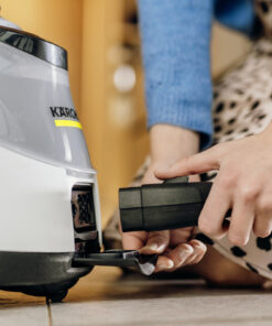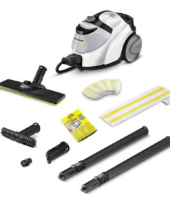 Καθάρισμα και σιδέρωμα; Κανένα πρόβλημα για τον Kärcher SC 5 EasyFix. Αυτό συμβαίνει επειδή ο ισχυρότερος ατμοκαθαριστής στην κατηγορία του (πίεση ατμού 4,2 bar) διαθέτει επίσης δυνατότητα σύνδεσης για σίδερο ατμού πίεσης. Ο σχολαστικός καθαρισμός με τον ατμοκαθαριστή της Kärcher απομακρύνει το 99,999% των ιών* και το 99,99% όλων των κοινών οικιακών βακτηρίων** από τις τυπικές σκληρές επιφάνειες των νοικοκυριών. Χρησιμοποιώντας διάφορα εξαρτήματα, πλακάκια, εστίες, απορροφητήρες και ακόμη και τα μικρότερα κενά θα γίνουν πεντακάθαρα, είτε αυτά διαθέτουν ήπιους είτε επίμονους ρύπους. Το ακροφύσιο δαπέδου EasyFix με εύκαμπτη άρθρωση επιτρέπει την εργονομική εργασία. Το πανί καθαρισμού δαπέδου μπορεί εύκολα να συνδεθεί στο ακροφύσιο δαπέδου και να αφαιρεθεί ξανά χωρίς να έρθεις σε επαφή με τη βρωμιά. Η λειτουργία VapoHydro απομακρύνει ακόμα πιο εύκολα τους επίμονους ρύπους με την προσθήκη ζεστού νερού. Η ένταση του ατμού μπορεί να ρυθμιστεί ανάλογα με την επιφάνεια και το ρύπο. Η αφαιρούμενη δεξαμενή νερού μπορεί να γεμίζει μόνιμα – για αδιάκοπο καθαρισμό. Πρόσθετα: ενσωματωμένη θήκη αποθήκευσης καλωδίων, θήκη αποθήκευσης εξαρτημάτων, θέση στάθμευσης για το ακροφύσιο δαπέδου.