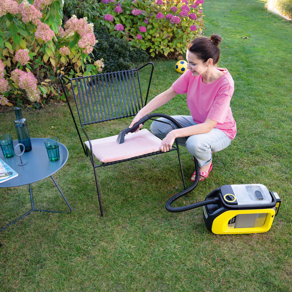 Η ισχυρή μηχανή ψεκασμού αναρρόφησης θα σε εντυπωσιάσει καθαρίζοντας βαθιά μέσα στις ίνες του εσωτερικού του οχήματος ή του χαλιού. Προσφέρει μέγιστη ελευθερία κινήσεων χάρη σε μια μπαταρία 18 V και τη λειτουργία έκπλυσης για τον καθαρισμό της συσκευής.