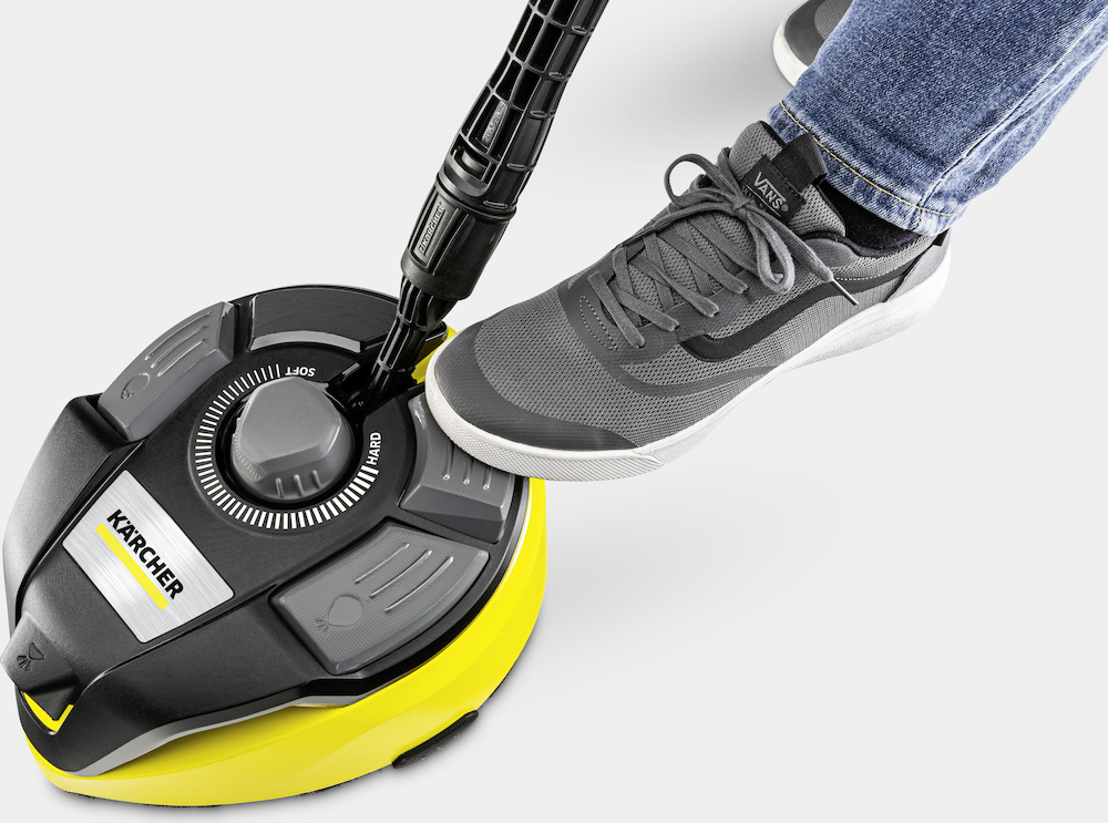 Χάρη στην υπερύψωση, το T-Racer είναι ιδιαίτερα εύκολο στον χειρισμό. Υπάρχει δυνατότητα επιλογής διαφόρων λειτουργιών απλά με τη χρήση του ποδοδιακόπτη. Χάρη στην πρακτική λαβή, μπορούν να καθαριστούν πάρα πολύ γρήγορα ακόμα και κάθετες επιφάνειες, όπως οι γκαραζόπορτες. Κατάλληλο για όλα τα πλυστικά μηχανήματα υψηλής πίεσης των σειρών K 4 έως K 7.