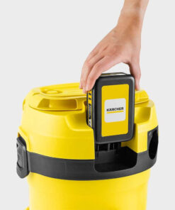 Η μπαταριοκίνητη σκούπα υγρής και ξηρής αναρρόφησης WD 2-18 Battery Set διαθέτει πλαστικό δοχείο 12 λίτρων, σωλήνα αναρρόφησης 1.8 μέτρων, λειτουργία φυσητήρα και ανήκει στην πλατφόρμα μπαταρίας 18 V της Kärcher.