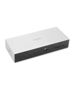 Docking Station της εταιρίας Kensington που συνδέεται σε Laptop με θύρα Thunderbolt 5.