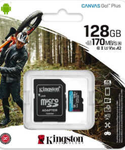 Η Kingston’s Canvas Go! Plus microSD είναι για αυτούς που είναι πάντα εν κινήσει κυνηγώντας να αποτυπώσουν την την τέλεια στιγμή. Με ανώτερες ταχύτητες μεταφοράς έως 170MB / s και με απόδοση ταχύτητας U3 και V30, τραβήξτε εκπληκτικά βίντεο 4K Ultra-HD. Επιπλέον η Canvas Go! Plus microSD , κατατάσσεται στην κλάση ταχύτητας A2, για να απολαμβάνετε ταχύτερη απόδοση των εφαρμογών για μια εξαιρετική εμπειρία σε smartphone. Ένας προαιρετικός προσαρμογέας SD παρέχει πρόσθετη ευελιξία για χρήση με συσκευές συμβατές με SD.