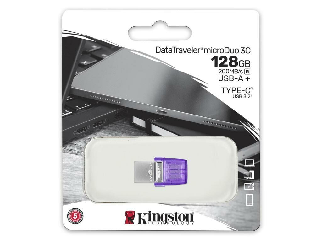 Το DataTraveler microDuo 3C διαθέτει διπλή διεπαφή που λειτουργεί τόσο με νεότερες θύρες USB Type-C όσο και με παραδοσιακές θύρες USB Type-A.