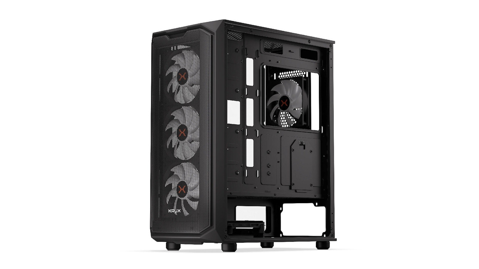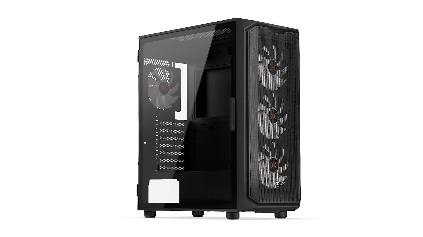 Το Krux Orona είναι μια θήκη για το gaming με ευρύ χώρο και άριστη ροή αέρα. Διαθέτει τέσσερις ανεμιστήρες 120 mm με οπίσθιο φωτισμό ARGB, με τρεις μπροστά και έναν πίσω.
