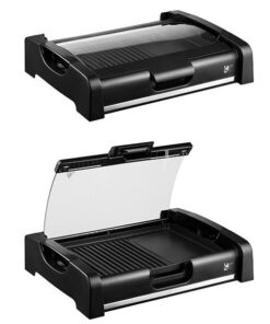 - Δύο επιφάνειες ψησίματος: καμπυλωτή και επίπεδη, ώστε να μπορείτε να ψήνετε ταυτόχρονα διάφορα προϊόντα.