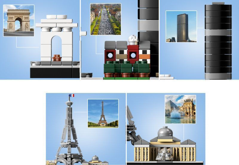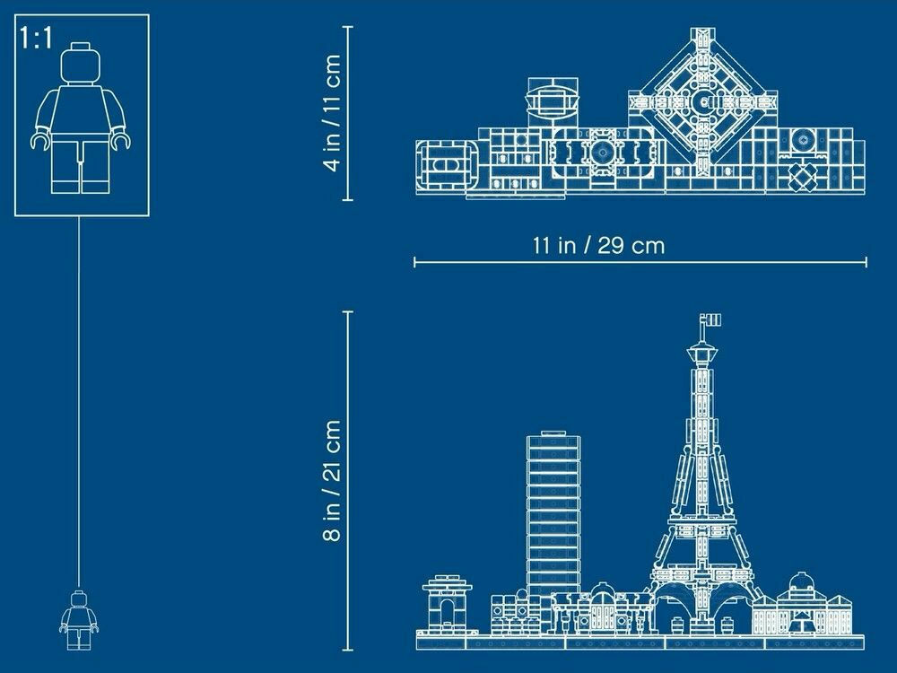 Αποτύπωσε το μεγαλείο της Παριζιάνικης αρχιτεκτονικής με αυτό το μεγαλοπρεπές σετ LEGO Architecture Skyline Παρίσι, που φέρνει κοντά την εμβληματική Αψίδα του Θριάμβου, τη λεωφόρο Champs-Elysees, τον ουρανοξύστη Tour Montparnasse, το Grand Palais, τον Πύργο του Άιφελ και το Λούβρο. Κάθε μεμονωμένο μοντέλο LEGO παρέχει μια μοναδική και άκρως ικανοποιητική κατασκευαστική εμπειρία σε ρεαλιστικό χρώμα και απεικόνιση υπό κλίμακα. Περιοχές με γρασίδι και δέντρα και μια διακοσμητική πινακίδα με το όνομα Paris προσθέτουν την τελευταία πινελιά σε αυτή την εξαιρετικά λεπτομερή αναπαράσταση της πιο ρομαντικής πόλης του κόσμου—ένα εξαιρετικό διακοσμητικό κομμάτι για το σπίτι ή το γραφείο!