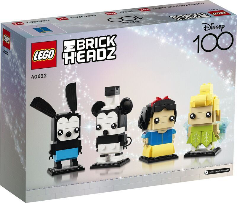 LEGO Brickheadz Disney 100th Celebration (40622). Δώστε στα παιδιά ηλικίας 10 ετών και άνω την ευκαιρία να γιορτάσουν τη Disney με αυτό το σετ LEGO® BrickHeadz 100η Επέτειος της Disney, που διαθέτει τον Όσβαλντ τον Τυχερό Λαγό, τον Μίκυ Μάους, τη Χιονάτη και την Τίνκερμπελ.