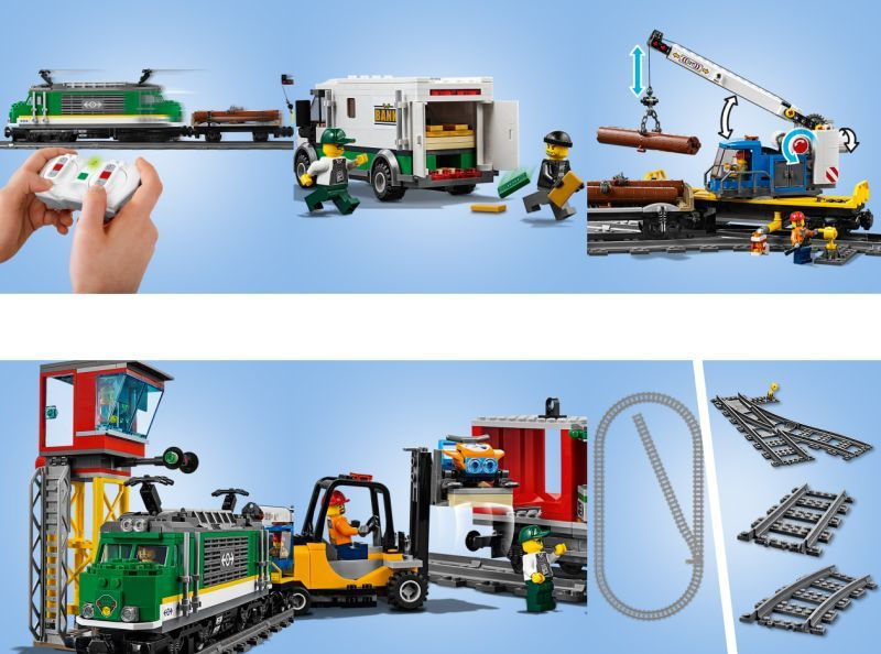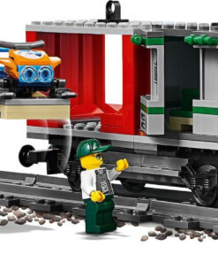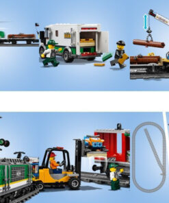 Ετοίμασε το LEGO City Φορτηγό Τρένο για φόρτωση! Χρησιμοποίησε το περονοφόρο για να φορτώσεις τα κοντέινερ, πριν τα ανυψώσεις πάνω στο βαγόνι με το γερανό. Σύνδεσε όλα τα βαγόνια πίσω από τη μηχανή, ανέβα στην καμπίνα, τράβα τη σφυρίχτρα και ξεκίνα!