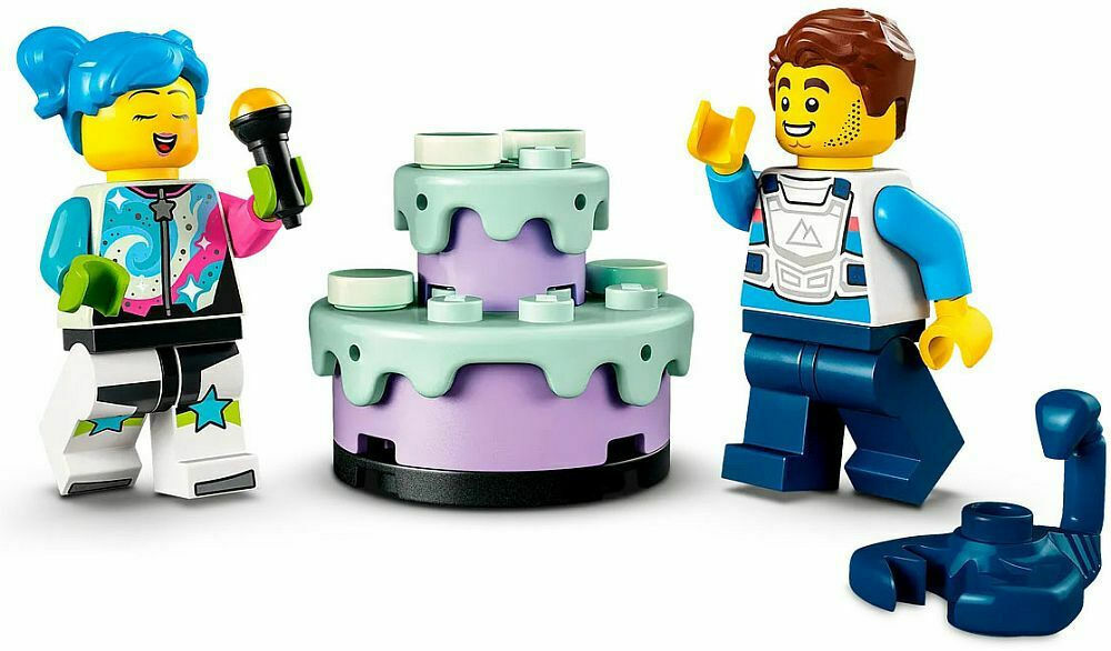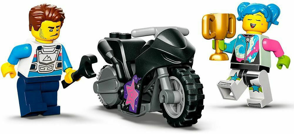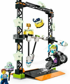Χαμήλωσε τα φως για μια Lego City Stuntz δοκιμασία που λάμπει στο σκοτάδι! Έλα μαζί με τους σταρ της τηλεοπτικής σειράς Lego City Adventures, Γαλαξιακή Πόππυ Σταρ και Χαρλ Χαμπς, για διασκεδαστικούς ακροβατικούς αγώνες με αυτό το κουλ σετ παιχνιδιού. Πάρε τη θέση σου στη Δοκιμασία Κατάρριψης, τροφοδότησε τη μηχανή σου και εκτοξεύσου για να χτυπήσεις μια στήλη και να κερδίσεις ένα βραβείο! Ποιος όμως θα είναι ο νικητής της ημέρας; Θα το μάθεις!