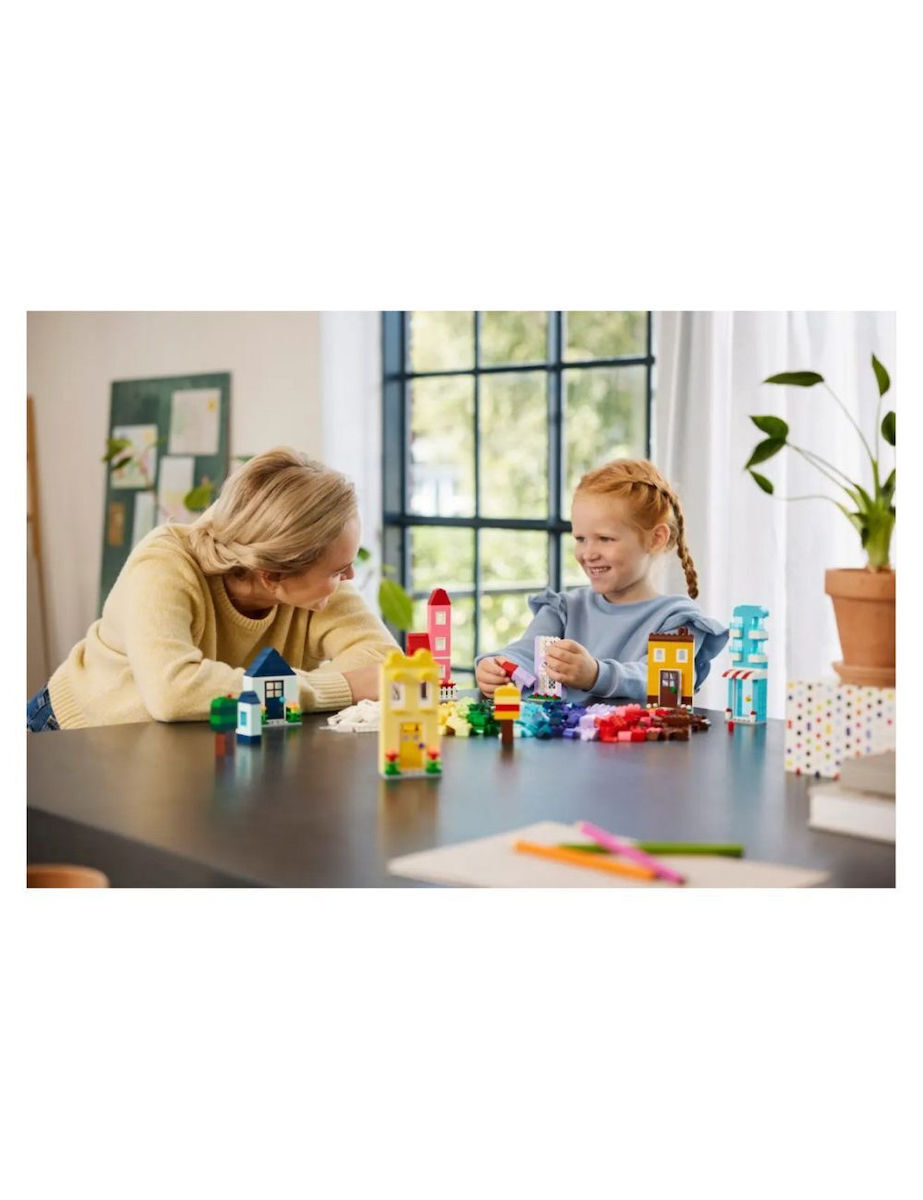 Κατασκεύασε 6 πολύχρωμα σπίτια με διαφορετικά σχέδια, ύψη και σχήματα. Η διασκέδαση συνεχίζεται καθώς προσθέτεις τουβλάκια για να κάνεις τα σπίτια ψηλότερα και ανταλλάζεις πόρτες, παράθυρα, οροφές, κήπους και άλλα για να αλλάξεις το σχέδιο κάθε σπιτιού.