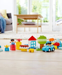 Το Brick Box της σειράς Duplo περιλαμβάνει 65 τουβλάκια και 2 μίνι κούκλες. Διαθέτει πολύχρωμα τουβλάκια σε διάφορα σχέδια, αυτοκίνητο με κινούμενες ρόδες, οροφή, παράθυρο, λουλούδια και ψωμί. Παρέχει την δυνατότητα στο παιδί να εμπνευστεί και να αναπτύξει την δημιουργικότητα του κατά την κατασκευή. Κατάλληλο για παιδιά ηλικίας 1.5+ ετών.