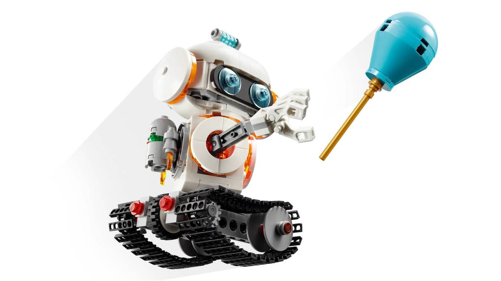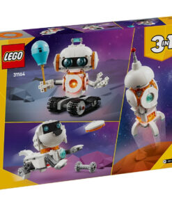 Το LEGO® Creator 3in1 Space Robot (31164) είναι ένα διασκεδαστικό σύνολο επιστημονικού παιχνιδιού για αγόρια και κορίτσια ηλικίας 8 ετών και άνω, που προσφέρει ατελείωτες δυνατότητες δημιουργίας και παιχνιδιού. Αυτό το ρομποτάκι κινείται σε ράγες και διαθέτει τζετ πακ, σώμα και κεφάλι που περιστρέφονται, χειρούλες και δάχτυλα που είναι κινητά, έναν μπαλόνι και ένα φωτεινό τουβλάκι που φωτίζει το στήθος του.