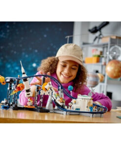 Κάνε μια βόλτα στο λούνα παρκ με θέμα το διάστημα και απόλαυσε εκπληκτικά παιχνίδια! Μπες σε ένα βαγόνι για μια γρήγορη βόλτα στο Διαστημικό Ρόλερ Κόστερ που διαθέτει έναν αστεροειδή και έναν μετεωρίτη. Μετά, ανακατασκεύασέ το σε πύργο πτώσης και ανέβα στην κορυφή πριν βουτήξεις γρήγορα προς το έδαφος, ή στριφογύρισε μέσα σε έναν μίνι διαστημικό πύραυλο ή ένα διαστημικό λεωφορείο σε ένα καρουζέλ. Η επιλογή είναι δική σου με αυτό το σούπερ κουλ 3 σε 1 σετ.