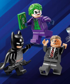 Το σετ περιλαμβάνει 3 δημοφιλή μινιφιγούρες: τον Batman με το Batarang του, τον The Joker που κρατάει λεφτά, και τον Two-Face με το χαρακτηριστικό ασημένιο νόμισμά του. Το κατασκευάσιμο Tumbler Batmobile ανοίγει για να αποκαλύψει τον πίνακα οργάνων και την καμπίνα με χώρο για την μινιφιγούρα του Batman.