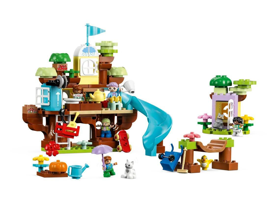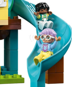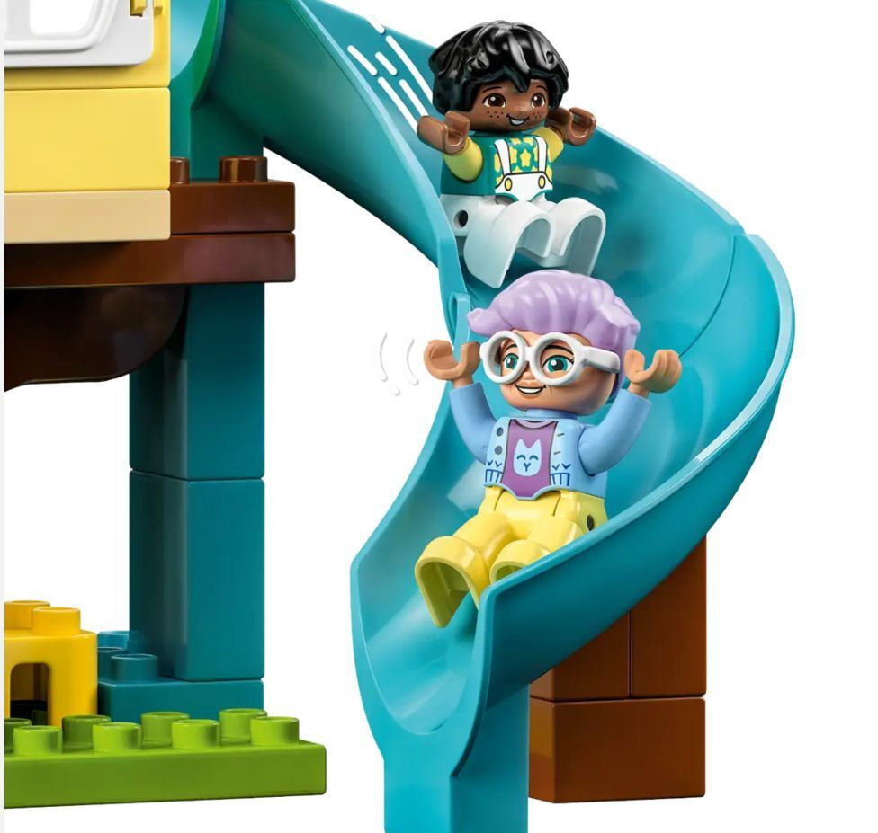 Οι ώρες παιχνιδιού είναι γεμάτες διασκεδαστικές ανακαλύψεις, καθώς τα νήπια εξερευνούν αυτό το γεμάτο χαρακτηριστικά σετ δεντρόσπιτων. Τα παιδιά σκαρφαλώνουν στη ταλαντευόμενη σχοινιά γέφυρα και κατεβαίνουν τη μεγάλη τσουλήθρα στον κήπο. Μπορούν να βοηθήσουν στη συλλογή φρούτων και λαχανικών και να τα πάνε στη γιαγιά στο δεντρόσπιτο. Όταν βρέχει, οι φιγούρες μπορούν να βρουν καταφύγιο κάτω από την ομπρέλα ή να επιστρέψουν στο άνετο δεντρόσπιτο για ένα φλιτζάνι ζεστή σοκολάτα.