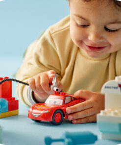 Εξασκούν τις λεπτές κινητικές δεξιότητές τους χρησιμοποιώντας το κλειδί, ανοίγοντας και κλείνοντας τις πόρτες του ντουλαπιού και απελευθερώνοντας τη μάνικα στο κατασκευάσιμο πλυντήριο αυτοκινήτων για να καθαρίσουν τον Κεραυνό Μακουίν από τα χώματα του αγώνα. Τα παιχνίδια κατασκευής και φαντασίας LEGO® DUPLO® βοηθούν τα νήπια να αναπτύξουν προσχολικές δεξιότητες.