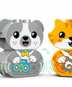 Αυτό το αξιαγάπητο σετ παιχνιδιού με ζώα περιλαμβάνει ένα γατάκι και έναν σκύλο, που κατασκευάζονται από 2 κομμάτια, φιλικά για νήπια. Το παιδί σας θα ενθουσιαστεί βάζοντας το ζωάκι του στον δακτύλιο που τσουλάει. Το χαρακτηριστικό ήχου που περιλαμβάνει κάθε ζώο ενισχύει ακόμα περισσότερο τις δυνατότητες παιχνιδιού και μάθησης, με ήχους που υποδεικνύουν την ώρα του φαγητού, του παιχνιδιού, του ύπνου κλπ. – ένας απίθανος τρόπος για να μάθουν τα παιδιά προσχολικής ηλικίας τις καθημερινές ρουτίνες.