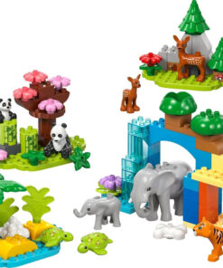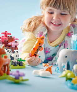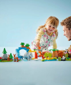 - Παιχνίδι φαντασίας με 10 LEGO® DUPLO® άγρια ζώα – Περιλαμβάνει φιγούρες τίγρης, ελέφαντα, ελαφιού και πάντα, κάθε μία με το μωρό της και 2 φιγούρες χελώνας.