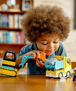 Με 2 φιγούρες εργατών οικοδομής, ένα ανατρεπόμενο φορτηγό και έναν εκσκαφέα με περιστρεφόμενη καμπίνα και κινούμενο φτυάρι, αυτό το τρομερό σετ οικοδομής δίνει σε νήπια και γονείς όλα όσα χρειάζονται για να ολοκληρώσουν το έργο τους. Τα παιδιά αναπτύσσουν δεξιότητες καθώς χειρίζονται τα οχήματα για να εκτελέσουν τις διάφορες εργασίες. Σήκωσε έναν βράχο με τον κάδο και ρίξε τον στο πίσω μέρος του ανατρεπόμενου φορτηγού. Αλλά πρόσεχε, γιατί ο βράχος μπορεί εύκολα να ανοίξει στα δύο! Κατάλληλο για παιδιά ηλικίας 2+ ετών.