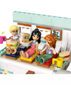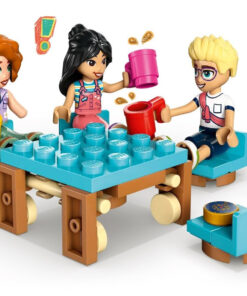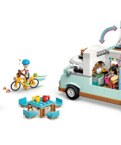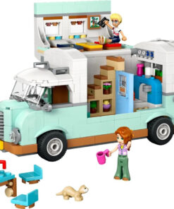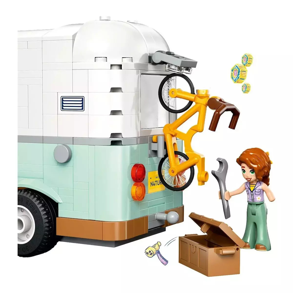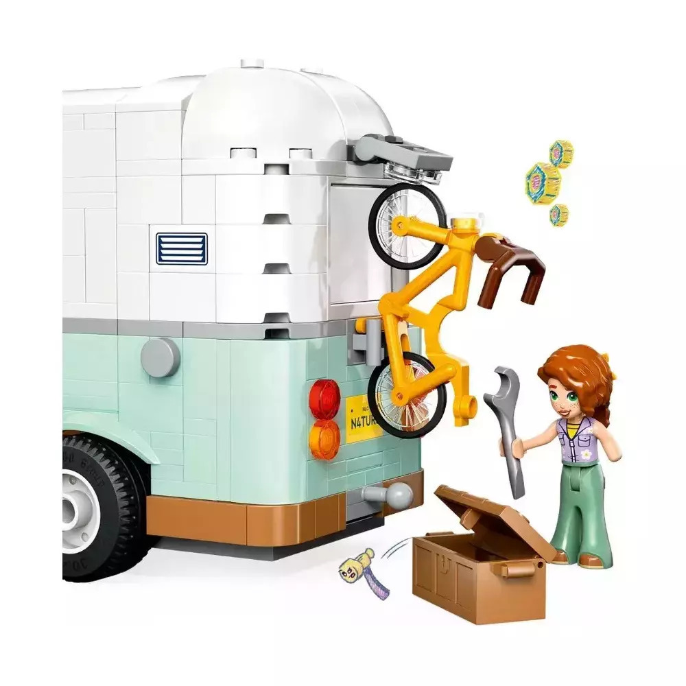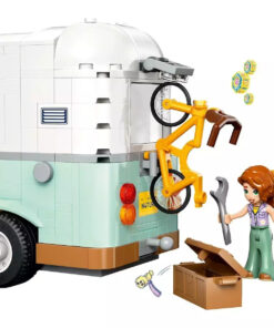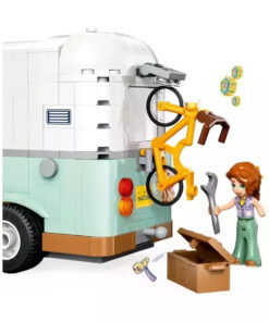 Αναδιπλούμενο τροχόσπιτο: Ανοίγει για να αποκαλύψει κουζίνα με εξοπλισμό μαγειρέματος, τουαλέτα και χώρο ύπνου με κρεβάτια για 3 μίνι κούκλες.