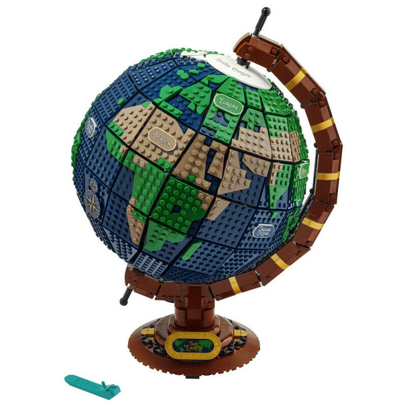 Αυτό το μοντέλο που δημιουργήθηκε από έναν θαυμαστή-σχεδιαστή και ήρθε στον κόσμο από την ομάδα LEGO® Ideas, αναπαριστά την περιστροφική κίνηση μιας παλιάς γήινης σφαίρας με τη βοήθεια στοιχείων LEGO Technic™ και διαθέτει φωσφορίζοντα πλακίδια διακοσμημένα με τα ονόματα των ηπείρων και των ωκεανών.