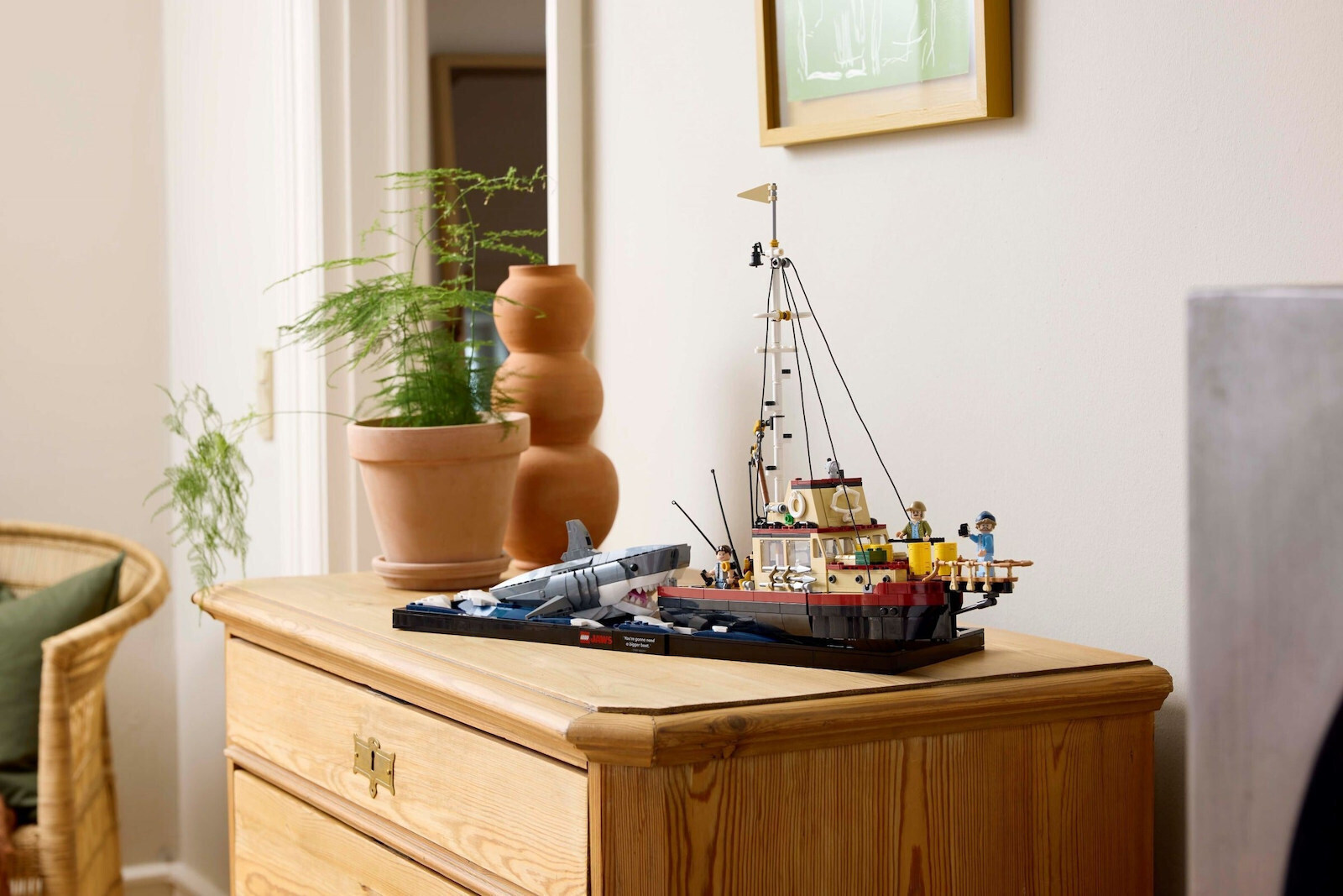 Δημιουργήστε το απόλυτο σετ οθόνης εμπνευσμένο από θαυμαστές που αναδημιουργεί τη συναρπαστική σκηνή της ταινίας Jaws όπου ο Quint, ο Chief Brody και ο Hooper αντιμετώπισαν τον καρχαρία από το κατάστρωμα της Orca.