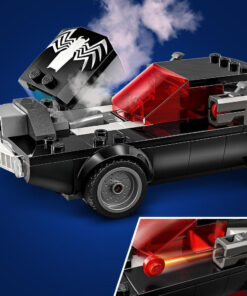 Το κατασκευάσιμο αυτοκίνητο Venom περιλαμβάνει 3 μίνι φιγούρες: τον Spider-Man με έναν εκτοξευτή ιστού, τον Venom με 4 πλοκάμια και την Spider-Woman (Julia Carpenter) με έναν μεγάλο ευέλικτο ιστό. Το αυτοκίνητο Venom διαθέτει εκτοξευτές από τις δύο πλευρές, προσβάσιμο κινητήρα και ανοιχτό θάλαμο. Ο Venom μπορεί να καθίσει μέσα στο αυτοκίνητο αφαιρώντας τα 2 κάτω πλοκάμια του, τα οποία μπορούν να χρησιμοποιηθούν για να «Venomize» το αυτοκίνητο. Ένας θησαυρός που περιέχει χρυσά ράβδους εμπνέει δράση ρόλων μεταξύ των ηρώων και του κακού. Ο θησαυρός μπορεί να ρυμουλκηθεί από το αυτοκίνητο, το οποίο περιέχει επίσης μια θήκη για τις χρυσές ράβδους.