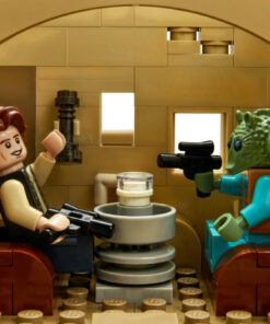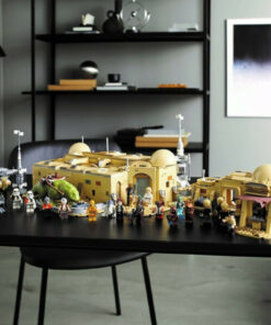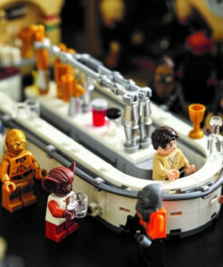 Προσθέστε τα επιπλέον κτίρια, 2 Ταχυσκάφη ξηράς και τη φιγούρα LEGO Ντιούμπακ για να ολοκληρώσετε το εντυπωσιακό κομμάτι. Στη συνέχεια, αναπαραστήστε σκηνές στην Καντίνα στον Τατουίν με διάφορες LEGO μίνι φιγούρες ηρώων, λαθρεμπόρων, κυνηγών επικηρυγμένων και εξωγήινων από τον Πόλεμο των Άστρων: Μια Νέα Ελπίδα.