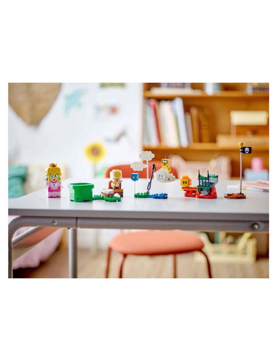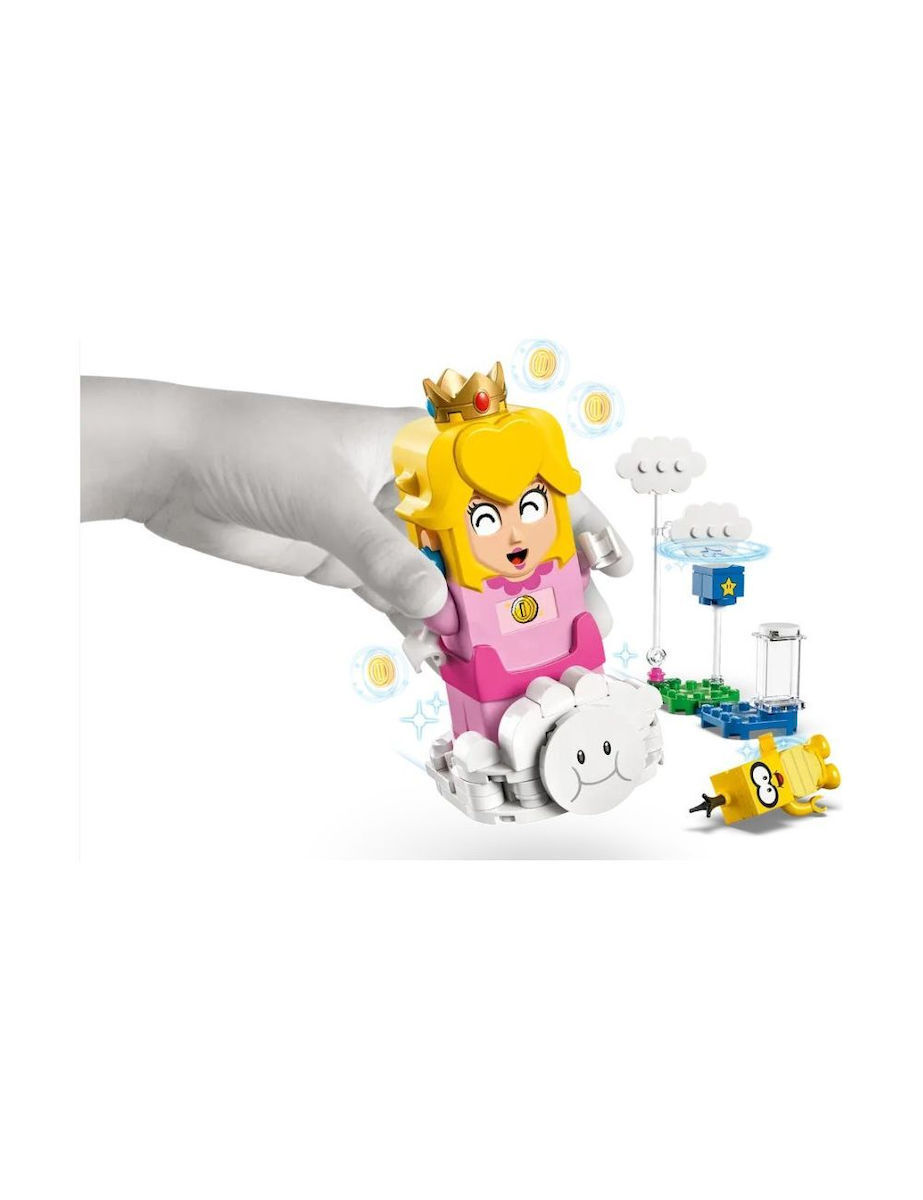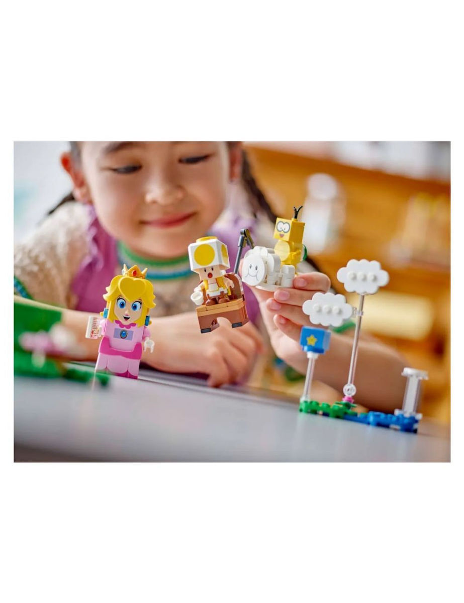 Ακολούθησε τη LEGO® Peach για ένα πικνίκ. Τι λέει όμως το γράμμα; Ο Lakitu έπιασε τον Yellow Toad! Ρίξε τον Lakitu από το σύννεφο και πέτα να τον σώσεις.