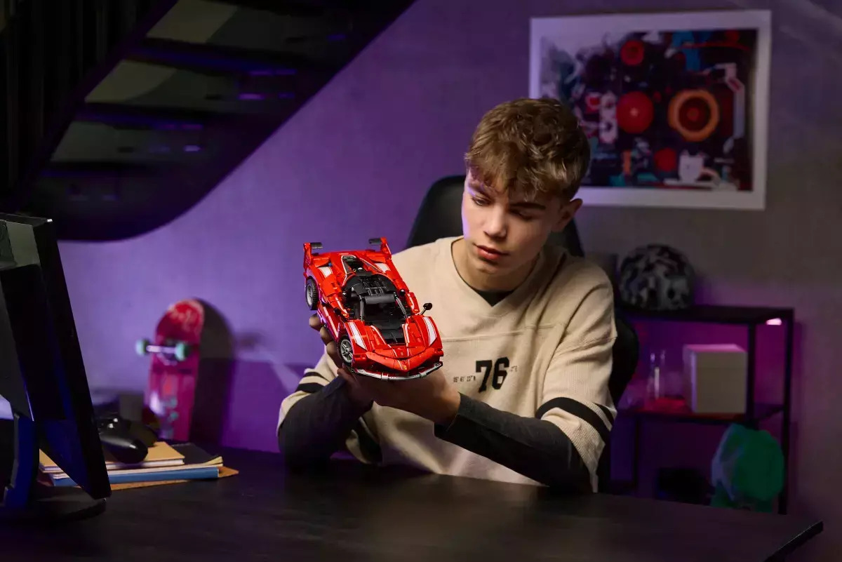 Αυτό το σετ LEGO Technic Ferrari FXX K προσφέρει μια μοναδική και ανατρεπτική εμπειρία κατασκευής για ηλικίες 10 ετών και άνω. Περιλαμβάνει 897 κομμάτια, κατασκευασμένα από ανθεκτικά πλαστικά, που συνδυάζουν τη διασκέδαση με την εκπαίδευση στη μηχανική. Η LEGO Technic προσφέρει τη δυνατότητα να δημιουργήσεις άκρως λεπτομερείς και λειτουργικούς μηχανισμούς, όπως ταχύτητες και άξονες μετακίνησης που αντικατοπτρίζουν τις πραγματικές δυνατότητες ενός σπορ αυτοκινήτου.