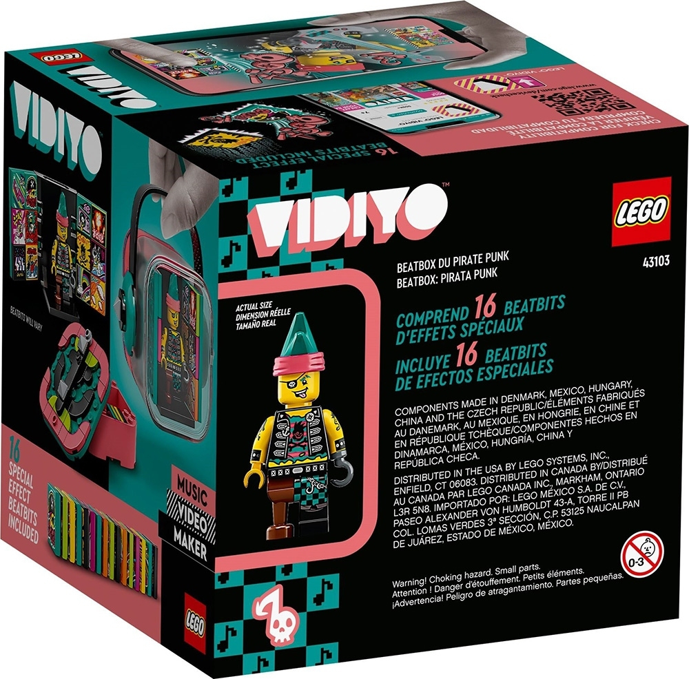 Σκηνοθέτησε, κάνε την παραγωγή και πρωταγωνίστησε στα δικά σου μουσικά βίντεο με το σετ LEGO® VIDIYO™ Punk Pirate BeatBox. Χρησιμοποίησε την εφαρμογή για να δώσεις ζωή στον πανκ πειρατή μέσα σε ένα απίθανο μουσικό βίντεο, το οποίο μπορείς να κοινοποιήσεις διαδικτυακά. Δες τον πειρατή να ροκάρει με την άγκυρα-κιθάρα του. Πρόσθεσε διασκεδαστικά ειδικά εφέ, όπως την αλλαγή λέξεων στο επιφώνημα ‘αρρρ’ με αυθεντικό πανκ πειρατικό στυλ! Έτοιμος για περιοδεία; Τέλεια! Το BeatBox σου διπλώνει για να το πάρεις μαζί σου.