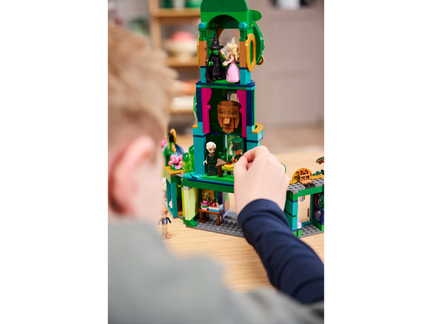 Συλλεκτικό παιχνίδι Welcome to Emerald City: Τα παιδιά ξεκινούν μια LEGO® κατασκευαστική περιπέτεια καθώς αναβιώνουν μια εμβληματική σκηνή από την ταινία Wicked με αυτό το σετ τριώροφου πύργου.