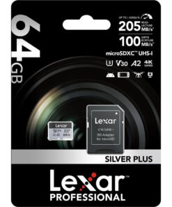 Η κάρτα μνήμης Lexar 64GB microSDXC UHS-I SILVER PLUS προσφέρει χωρητικότητα 64GB και υποστηρίζει βίντεο Full HD και 4K/60p μέσω του διαύλου UHS-I. Ιδανική για συνεχείς ριπές κλείστρου, γρήγορες λήψεις καθώς και λήψεις raw και JPEG, η κάρτα αυτή παρέχει μέγιστες ταχύτητες ανάγνωσης έως 205 MB/s και εγγραφής έως 100 MB/s, με ελάχιστες ταχύτητες εγγραφής που δεν πέφτουν κάτω από 30 MB/s χάρη στην κατηγορία ταχύτητας V30.