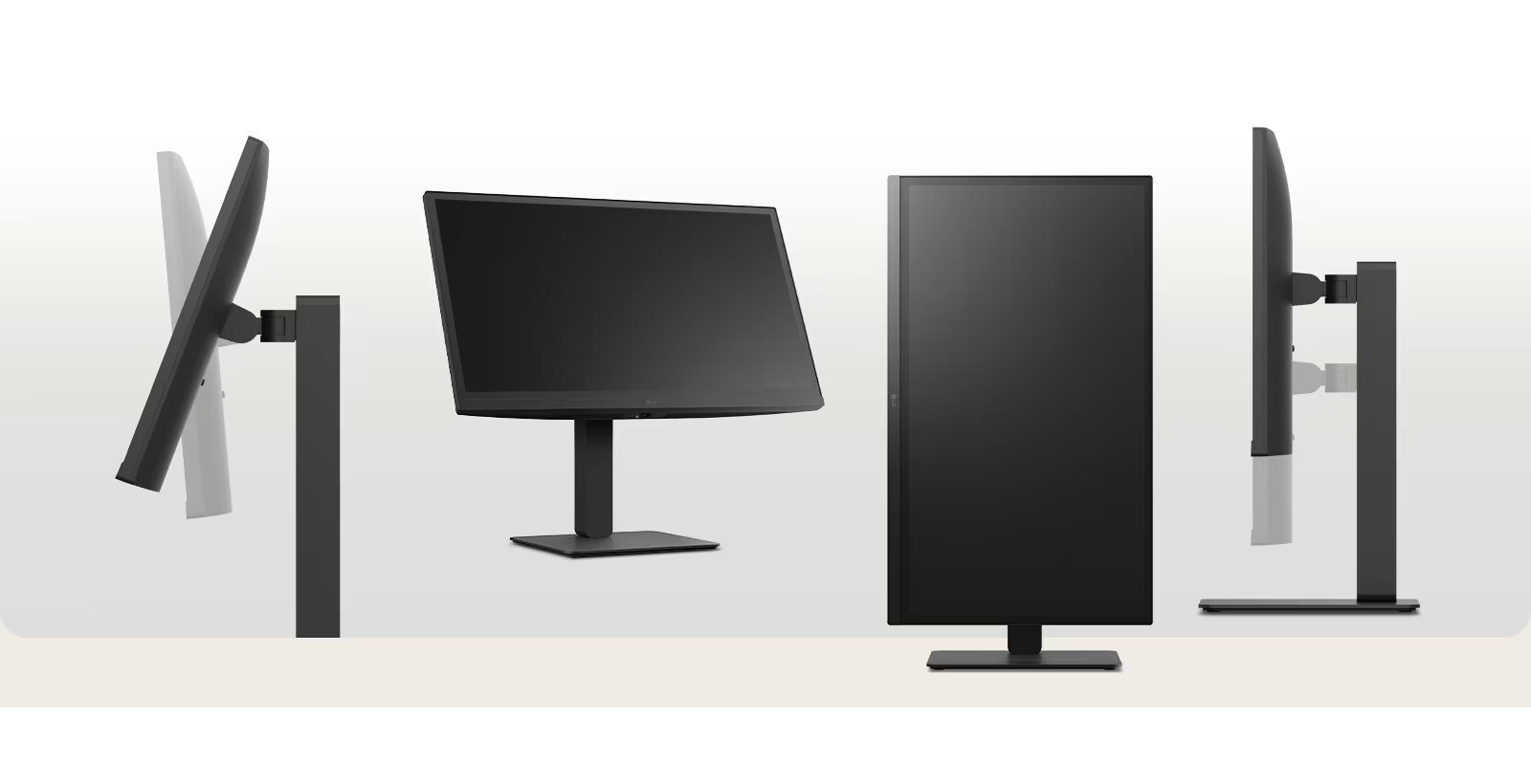 Ο σχεδιασμός λεπτού πλαισίου 3 πλευρών με λεπτή βάση ενσωματώνεται άψογα στο χώρο εργασίας σας, προσφέροντας ιδανική εμπειρία εργασίας με βολικές ρυθμίσεις κλίσης, ύψους, περιστροφής και περιστροφής.