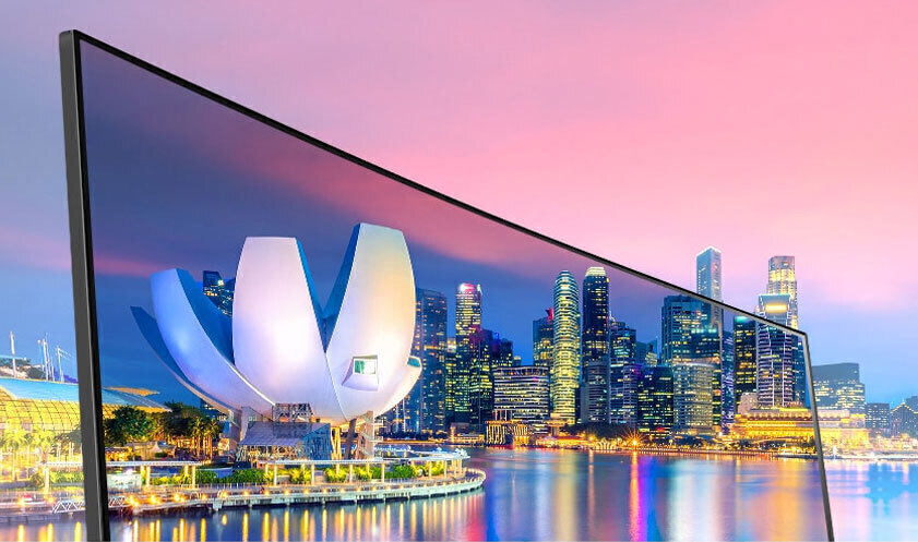 Αυτή η βελτιωμένη οθόνη διαθέτει λεπτό προστατευτικό πλαίσιο στις τρεις πλευρές, χωρίς να αποσπάται η προσοχή από τη μοναδικής ακρίβειας, ζωντανή εικόνα, ενώ τα στερεοφωνικά ηχεία 7 W με τεχνολογία MaxxAudio ολοκληρώνουν την καθηλωτική εμπειρία.