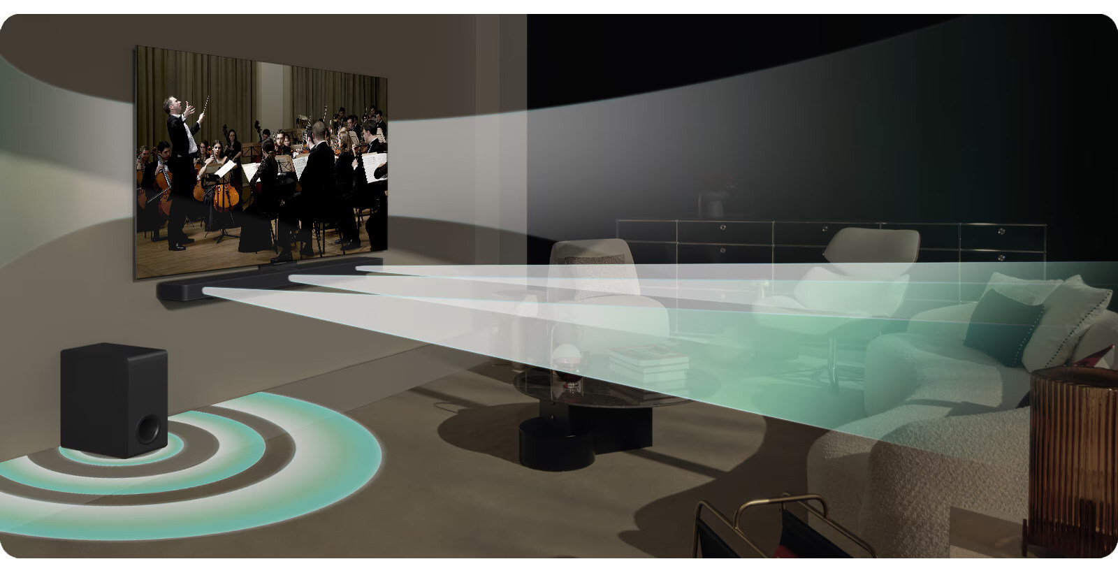 Η μοναδική ποιότητα ήχου, εύρους και τονικότητας των LG Soundbar και LG TV σας συνδυάζονται αρμονικά για μια συναρπαστική ηχητική εμπειρία.