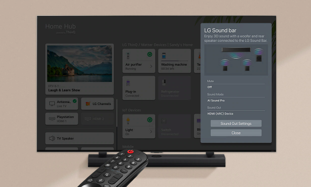 Αποκτήστε πρόσβαση στο WOW Interface στην LG TV για απλό έλεγχο του soundbar, όπως λειτουργίες, προφίλ και χρήσιμα χαρακτηριστικά.