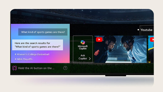 Ζητήστε από την τηλεόρασή σας οτιδήποτε. Το ενσωματωμένο AI αναγνωρίζει τη φωνή σας και παρέχει εξατομικευμένες προτάσεις. Μπορείτε να λάβετε επίσης επιπλέον αποτελέσματα και λύσεις με το Microsoft Copilot.