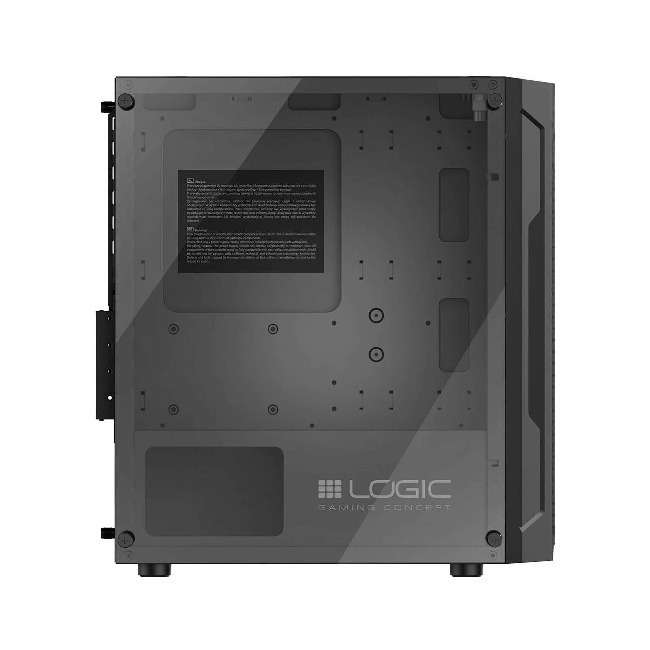 Όπως αρμόζει σε μια θήκη PC για παιχνίδια, η Logic Aramis διαθέτει γυαλί από σκληρυμένο γυαλί στις πλευρικές θήκες. Σκόπιμα περιορίστηκε μόνο στο πλευρικό πάνελ, προς όφελος ενός ευάερου μπροστινού πάνελ.